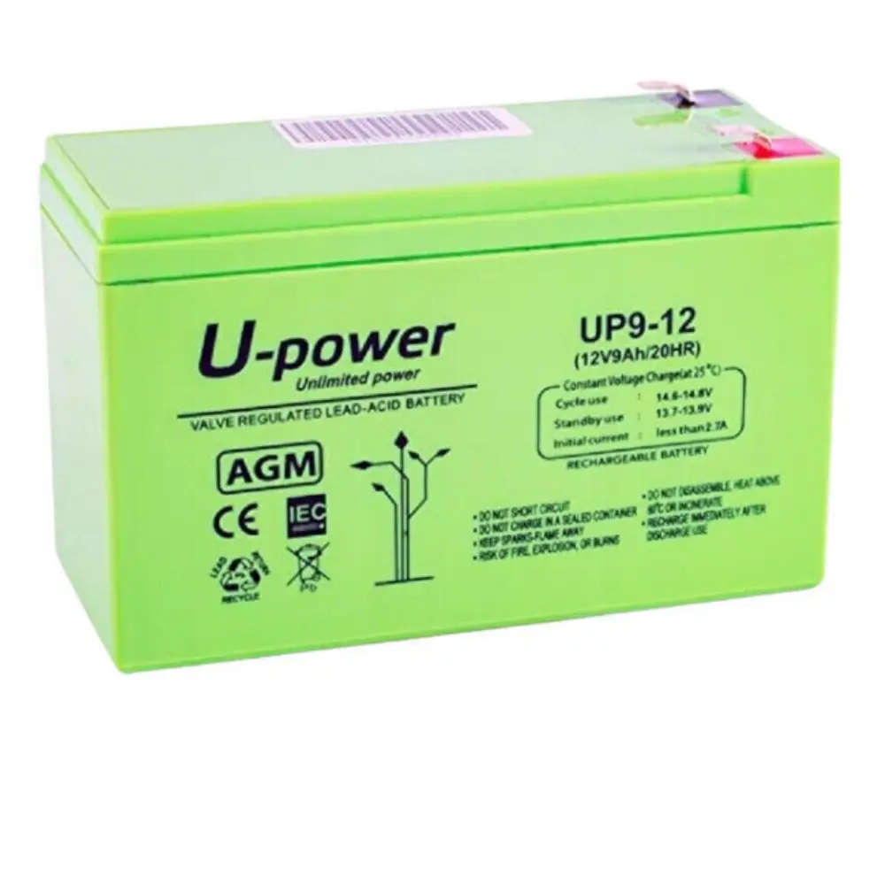 Bateria Plomo AGM 12V 9Ah U-POWERTerminales tipo Faston de 6,35mm (F2)