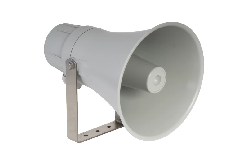 Altavoz exponencial EN 54Altavoz de gran eficacia. con difusor exponencial y motor que proporcionan un alto nivel de salida. Envía el sonido a gran distancia y cubre grandes zonas.Altavoz exponencial para sistemas de alarma por voz. Certificado bajo la norma EN 54-24.Gran calidad y excelente respuesta en frecuencia para instalaciones profesionales de megafonía interior y exterior. Alta resistencia a condiciones climatológicas adversas.Para instalaciones de megafonía en grandes espacios, Naves industriales, pabellones, instalaciones en exterior