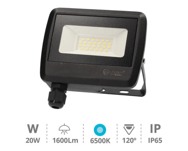 Proyector aluminio 20W 6500K IP65 Negro